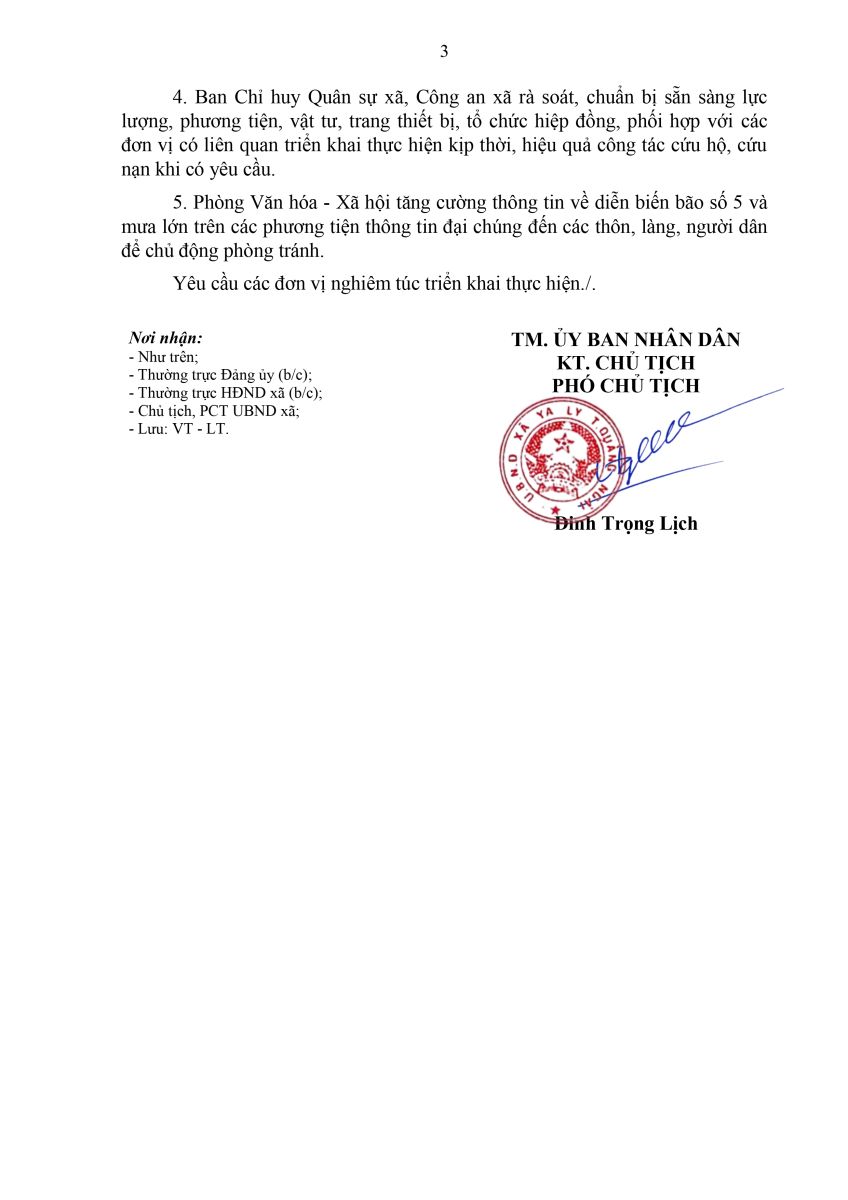 Về việc chủ động ứng phó với diễn biến bão số 5 và nguy cơ mưa lớn gây ngập lụt, sạt lở đất, lũ ống, lũ quét